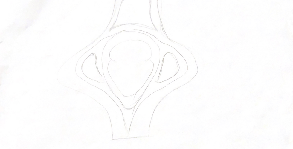 Na veel geschetst te hebben werd ik in plaats van enthousiast juist een beetje moedeloos. Ik zag heel veel mooie vormen voor me maar ik had nog geen idee hoe ik deze 3D moest krijgen van een plat stuk papier. Daarnaast zijn het complexe vormen, dus ik begon me ook zorgen te maken over de uitvoering.